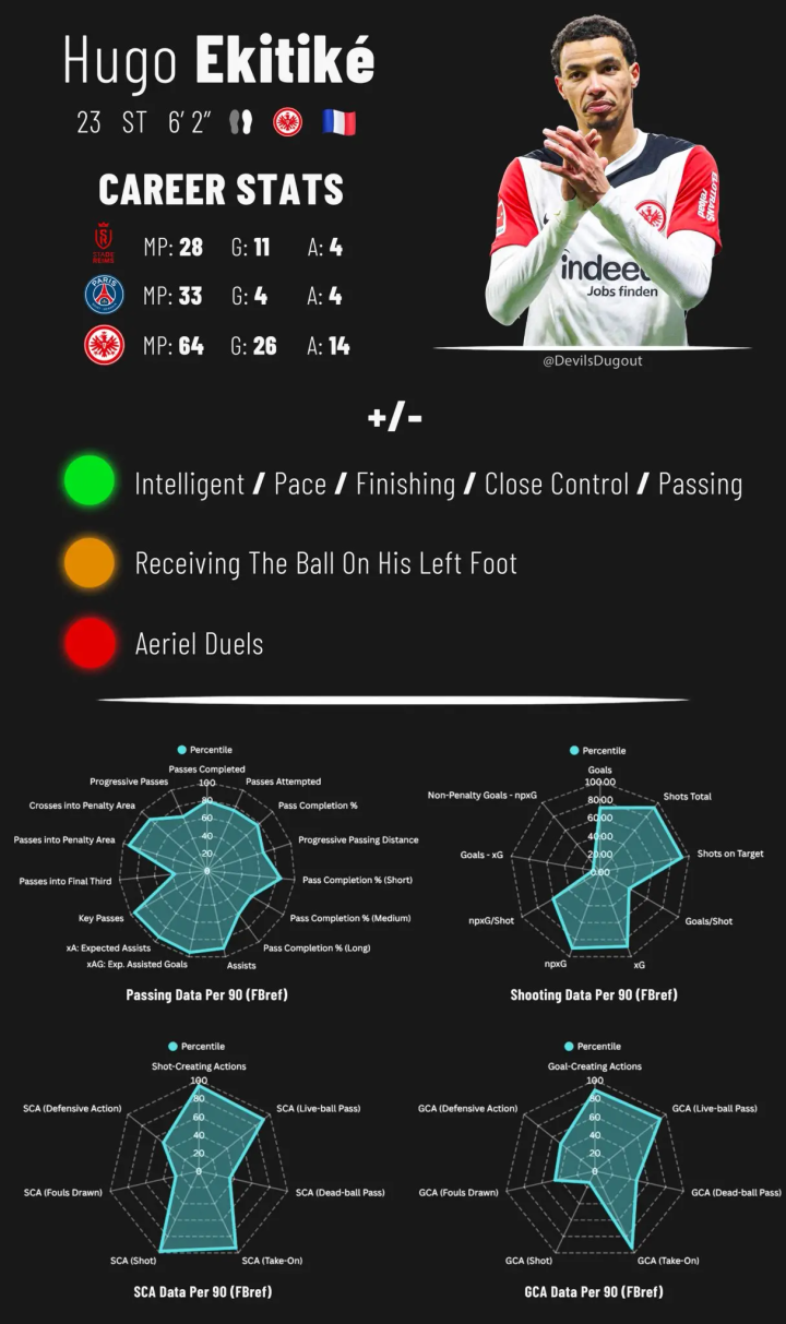 埃基蒂克在过去的比赛中打进了22球并助攻12次,证明了他在进攻端的威胁性。除此之外,他的盘带能力也相当出色,能够灵活转身过人,给对手制造不小的困扰。在进攻端,他的传球准确度也有所提升,展现出了不俗的策应能力。